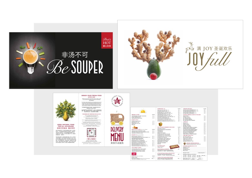 Brand Identity and Product Naming. I helped to develop a Chinese trading name for Pret, and crafted a typographic treatment that compliments the brand’s global identity and will work holistically across China. I continued to work with the client’s food team in devising appropriate product names that capture Pret’s essence for every item on its Mainland Chinese menus.